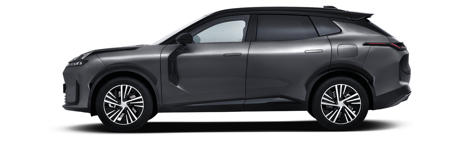 Nhìn từ bên hông, SUV Lynk & Co này gây ấn tượng với thiết kế tay nắm cửa ẩn và đặc biệt là cửa kính không viền (frameless windows) ở cả 4 cánh cửa – một chi tiết thường chỉ thấy trên các dòng xe sang hoặc siêu xe. Gương chiếu hậu cũng được thiết kế tràn viền, tối ưu tính khí động học.